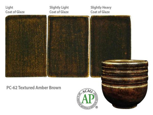 Original price $22.00 - Original price $22.00Original price$22.00$22.00 - $22.00Current price $22.00| /In stockTEXTURED AMBER BROWN PC-62 Product Description PC-62 Textured Amber Brown is a glossy brown glaze that breaks lighter where thinner like a traditio...